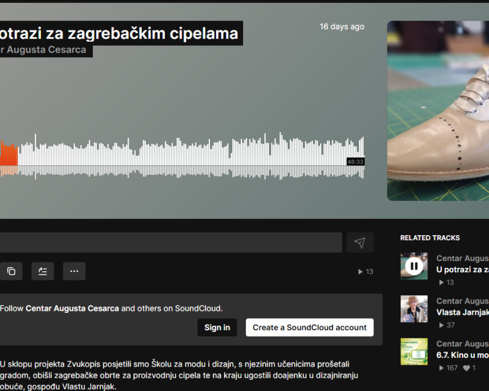 Uživali smo u cijelom procesu, a sada i u finalnom rezultatu – snimci koja dokumentira zvukove alata i strojeva koji se koriste u proizvodnji cipela, potpetica koje trče po školskim hodnicima i razgovore s poznatim zagrebačkim poduzetnicima u svijetu proizvodnje obuće. Sve možete poslušati na: https://on.soundcloud.com/FXX6IokHH34jy6EirF